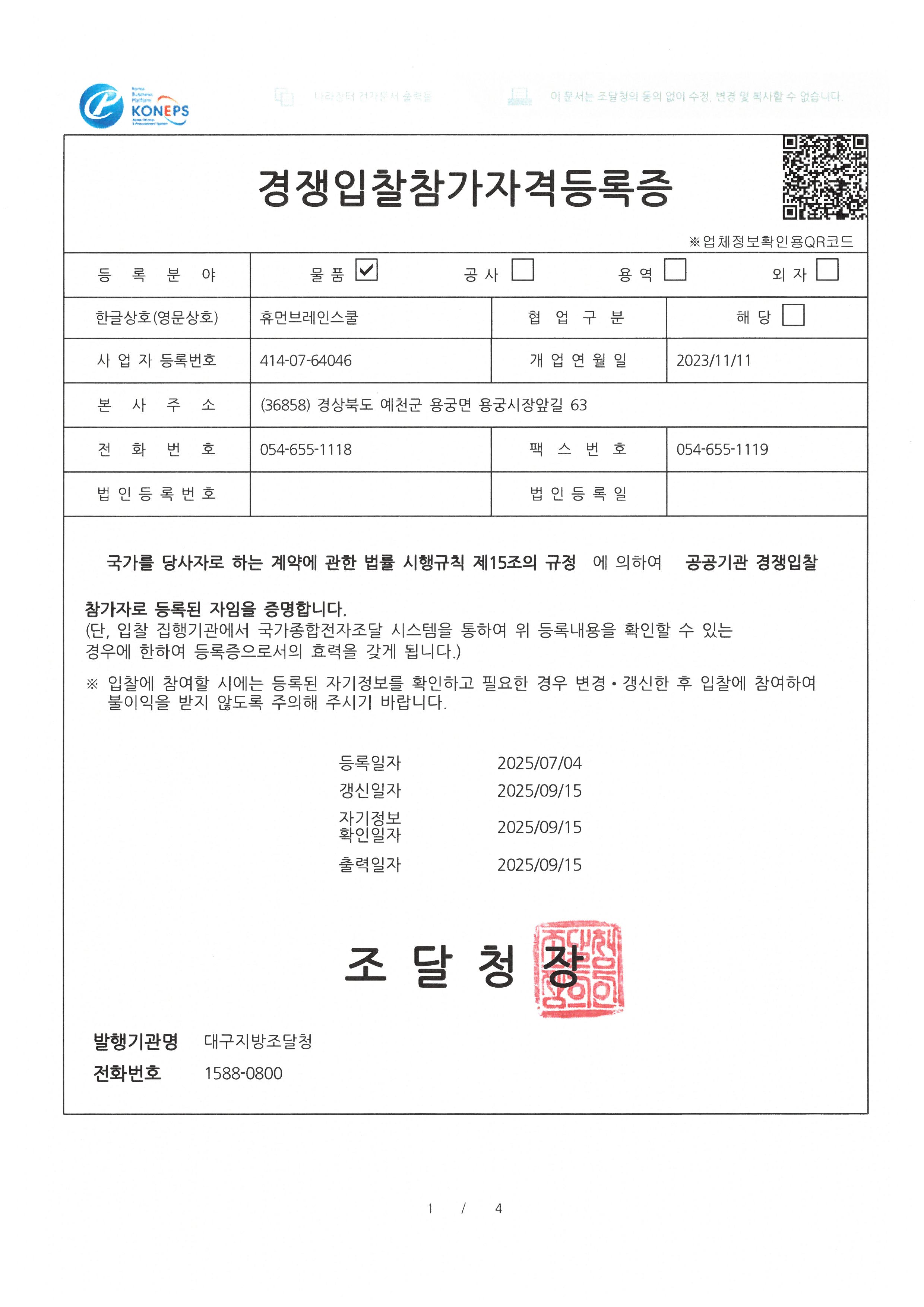 나라장터 경쟁입찰참가자격등록증